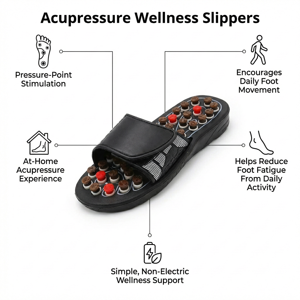 Unlike basic slippers that mask pain, our design uses rotating acupressure nodes to treat the root cause. Experience a deep-tissue massage with every step that boosts circulation and vitality.